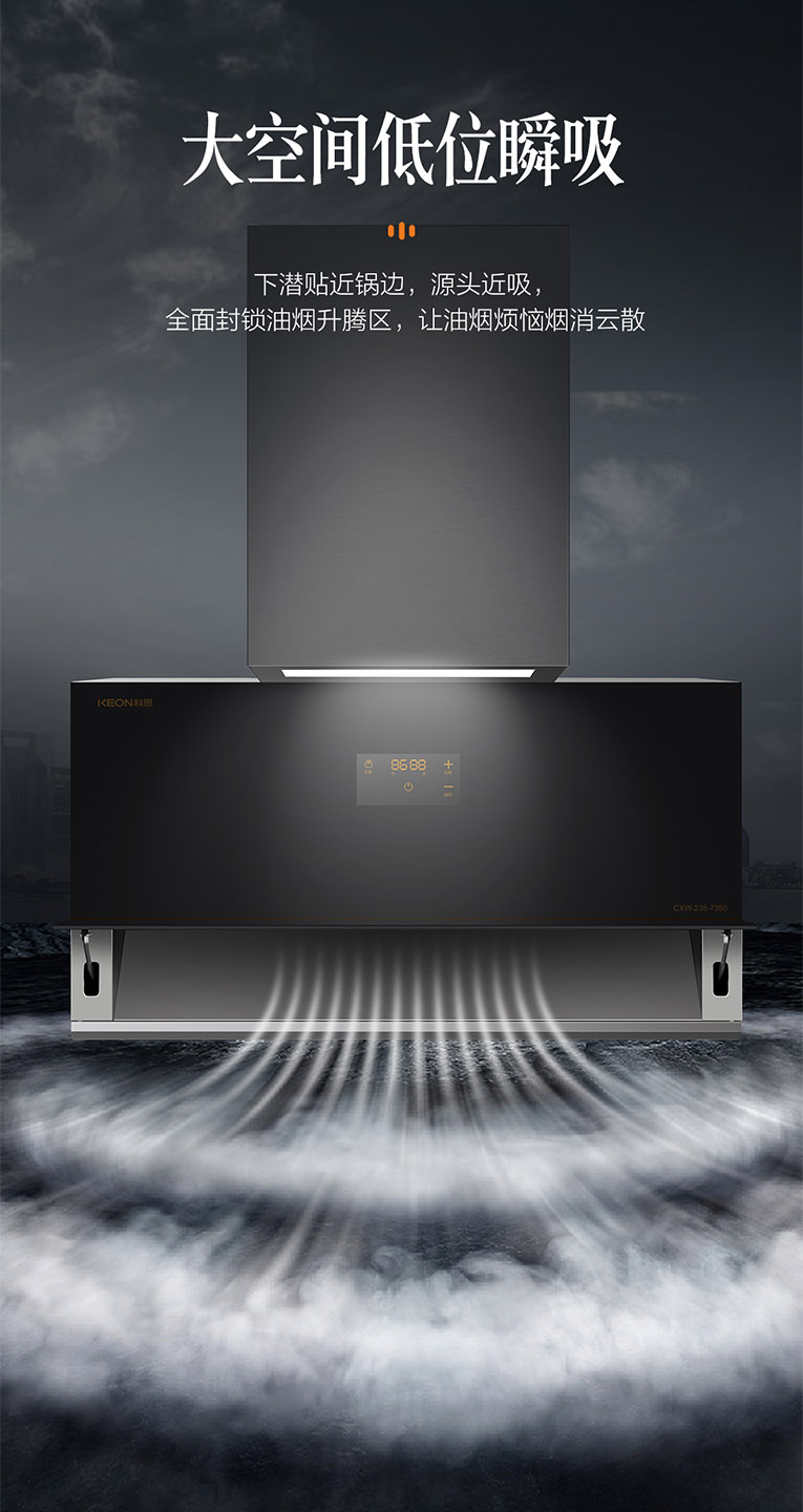 另外,科恩新一代7350變頻大吸力煙機(jī)擁有智能語音+揮手操控功能,智能語音聲控自由,呼喚“你好小科”可控制煙機(jī),揮手調(diào)檔,紅外線隔空體驗(yàn)操控,開機(jī)+排煙,揮手即凈,不油膩,同時(shí)還搭載60S延時(shí)關(guān)機(jī)功能,吸盡熱鍋余煙,人離也能凈油煙。