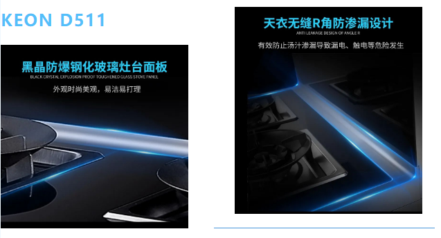 灶臺(tái)面板采用黑晶防爆鋼化玻璃,三重防護(hù)臺(tái)面:鋼化玻璃+防爆膜+防爆鋼板,防爆防燙更易打理,搭配熱電偶熄火保護(hù)裝置,遇意外快速切斷氣源電源。