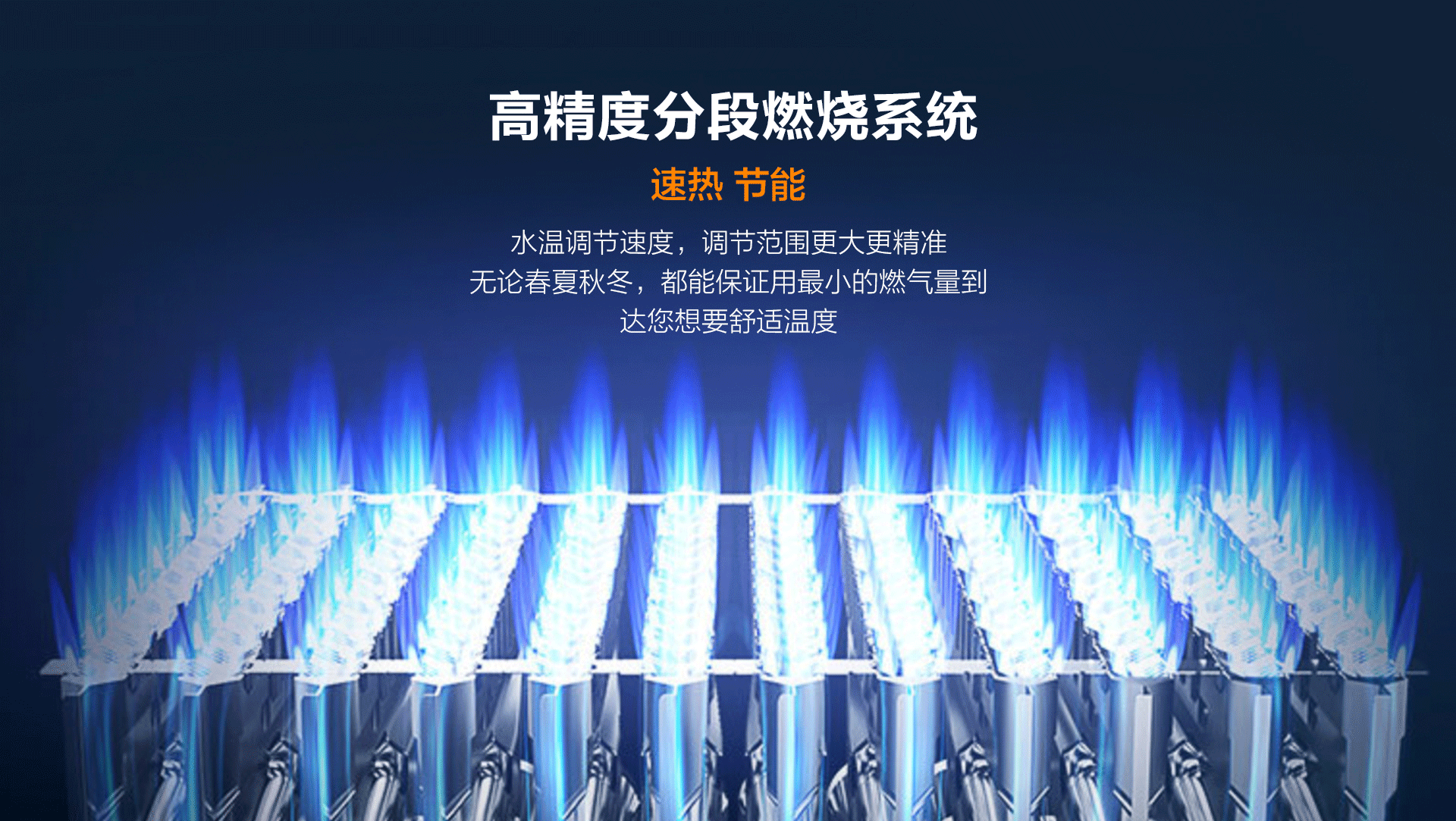 分段燃燒,速熱節能:高精度分段燃燒系統,可根據不同使用要求自動切換,調節范圍更大更精準,夏天出水不燙,冬天出水恒溫舒適,無論春夏秋冬,都能保證用最小的燃氣量到達您最想要的舒適溫度。