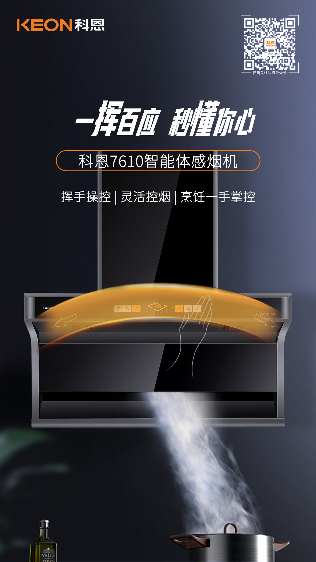 廚房有煙火,家里有溫度,科恩7610頂側(cè)雙吸平板煙機,用心呵護著柴米油鹽里的浪漫!