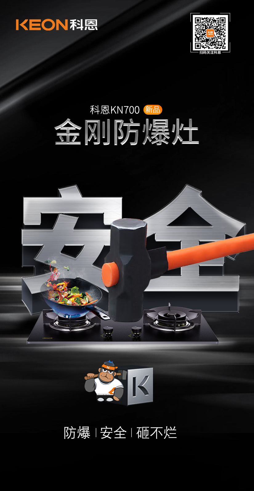 如何讓國民廚房更安全?科恩研發(fā)了金剛防爆灶,采用硅碳合金板,不僅抗沖擊更可耐高溫1500℃,為國人廚房生活樹立起堅固的安全屏障!