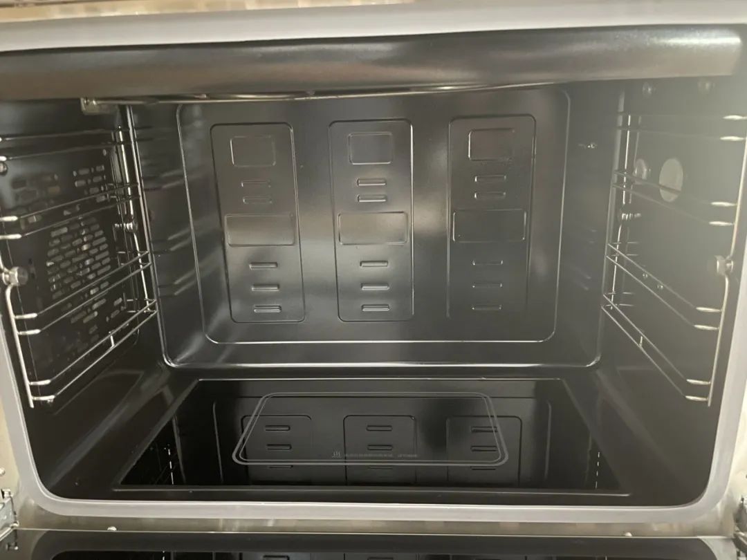 蒸烤箱內(nèi)部采用一體拉伸搪瓷內(nèi)膽,不易積食物殘?jiān)⑺负陀蜐n,清理更便捷。