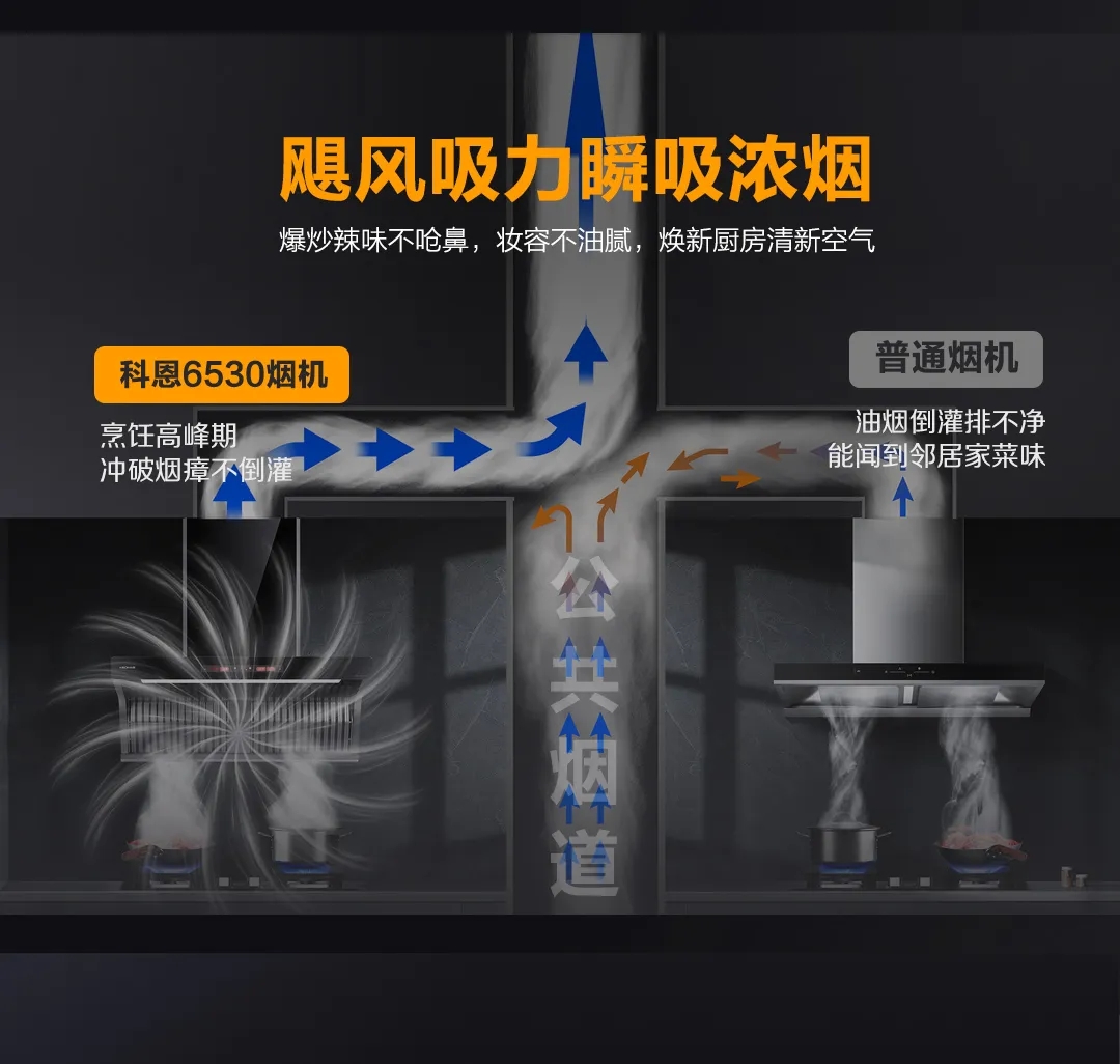 科恩6530免清洗油煙機(jī)+KN700金剛防爆灶,就十分符合中國(guó)家庭烹飪需求。