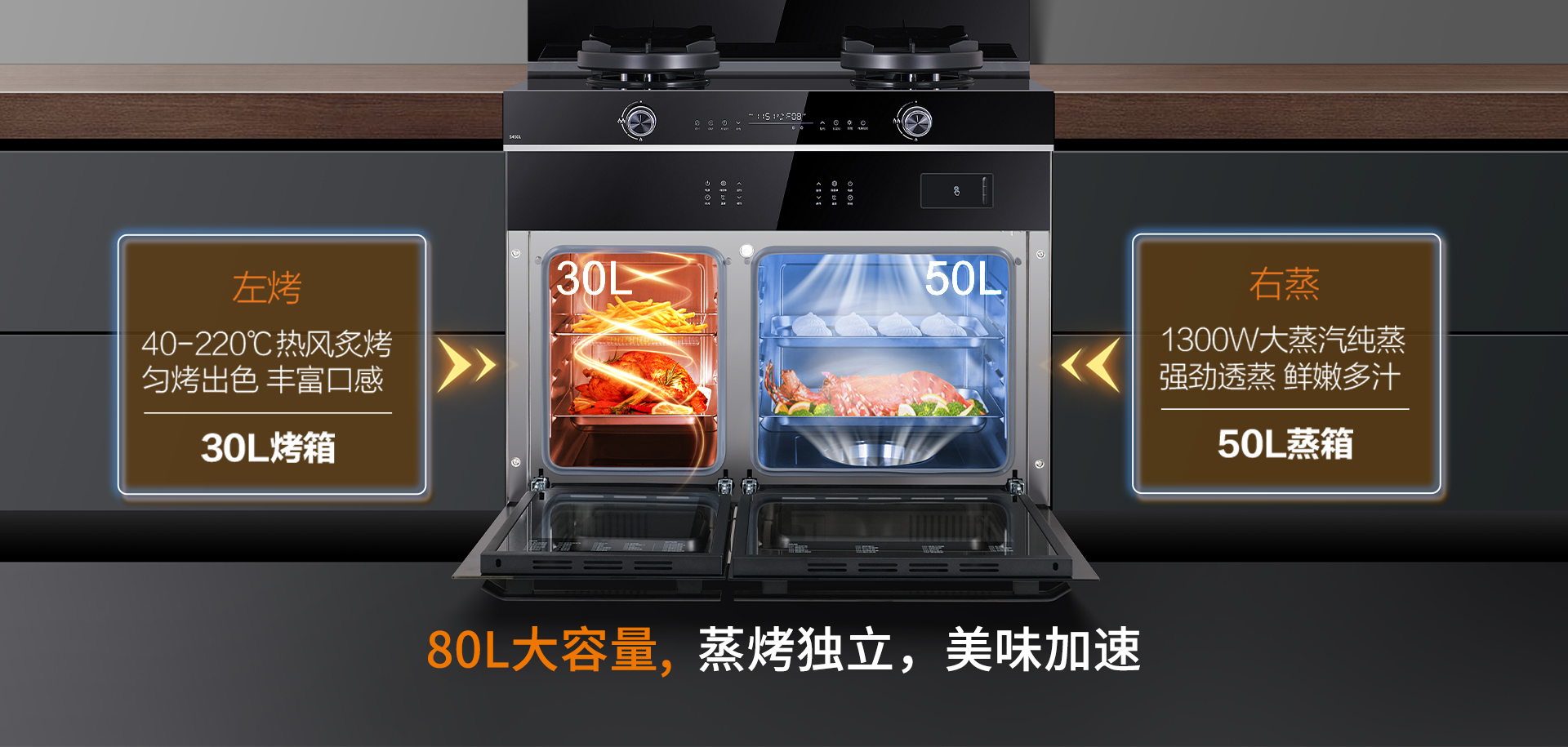 S450L蒸烤獨立集成灶風力可達23m³颶風吸力,真正實現(xiàn)消煙于源頭。同時,搭載智能變頻巡航功能,遇強則強,自動變頻增壓排煙,,即使做飯高峰期也能保障廚房清爽無異味。