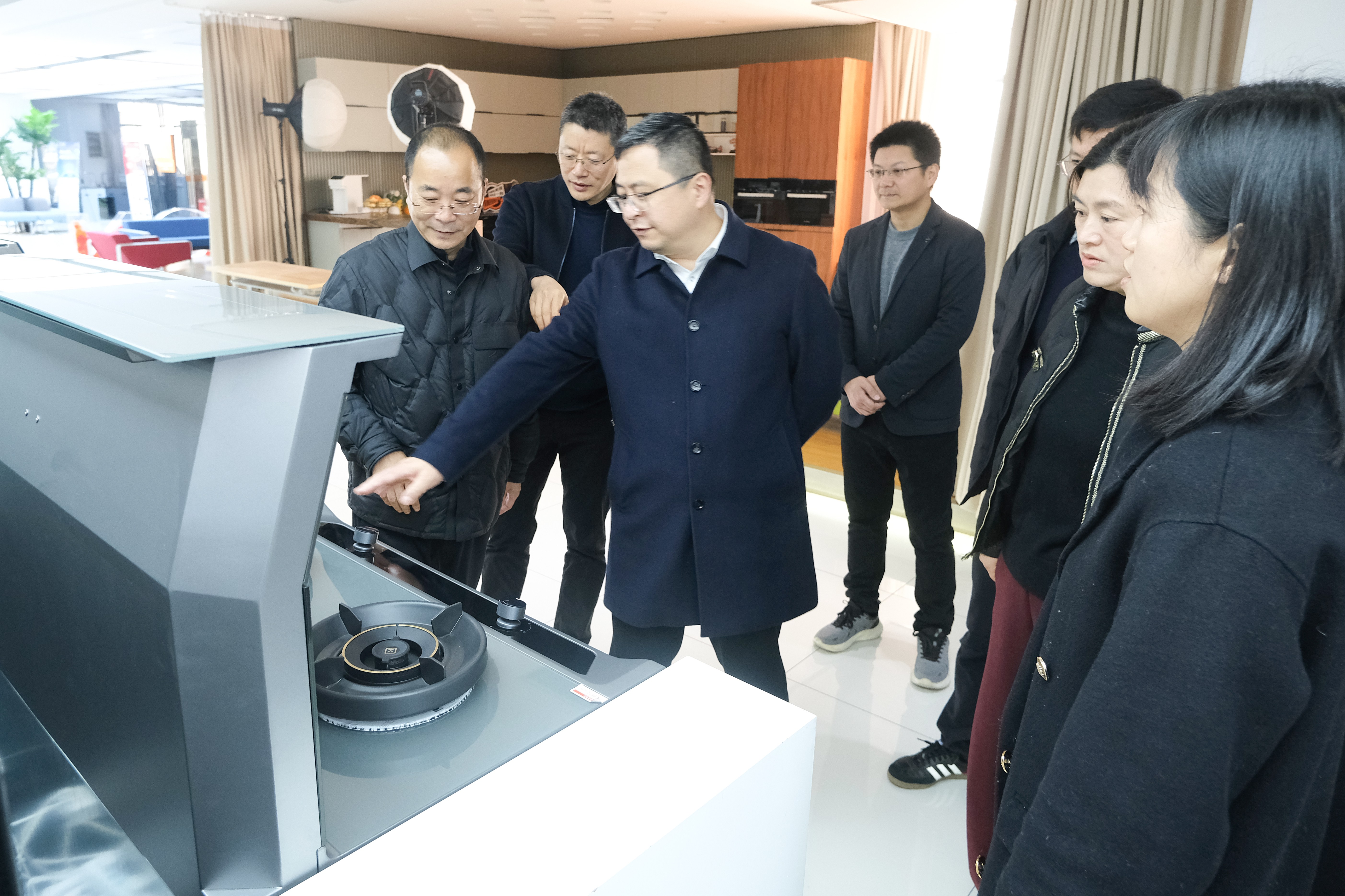 在科恩董事長俞鋒的熱情接待和陪同下,調研組一行參觀了科恩電器的企業文化長廊,科技展廳,全面系統地了解科恩電器的發展歷程,產品創新研發情況,重點調研了無煙氣化爐等智能廚電產品的研發與應用。