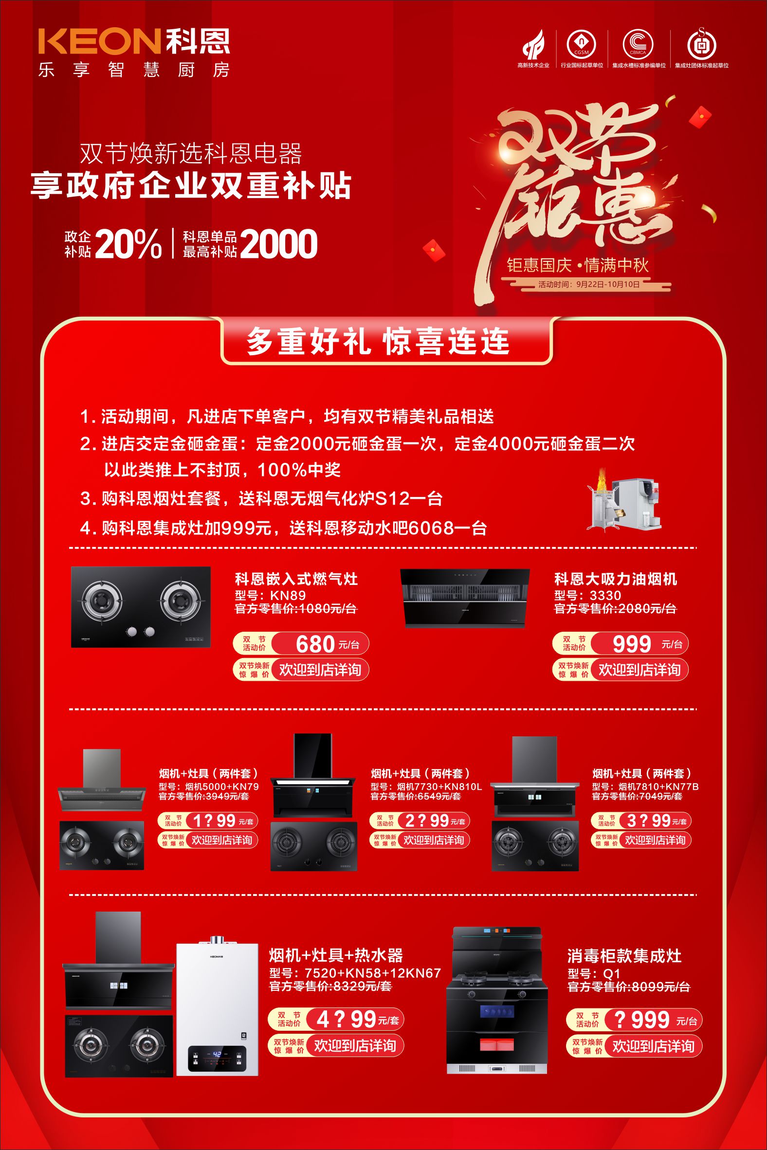 雙節(jié)同慶,廚電煥新黃金季,國慶中秋喜相逢,科恩廚電以“鉅惠國慶,情滿中秋”為主題,于9月22日-10月10日開啟限時狂歡盛典。值此家國同慶之際,雙節(jié)狂歡盛典火熱開啟,讓科技與溫情相伴,讓品質生活觸手可及!