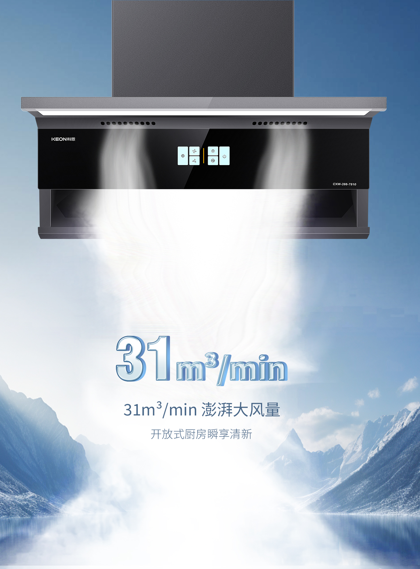 凈煙神速 顏值擔(dān)當(dāng)。新年爆炒,油煙無蹤,3秒清場,全域攏煙,1350Pa變頻風(fēng)壓,排煙順暢。2.5cm輕薄機身,冰川灰鑲邊,天鵝頸設(shè)計,釋放開闊空間,揮手智控,凈煙不沾油污。易潔省心 健康相伴。特氟龍工藝,油污不粘。智旋清洗,吸力持久強勁。3分鐘延時關(guān)機,余煙盡除,IP67全景天幕,護眼清晰,模塊化觸控,操作直觀簡單,0.5立方大空間,翻炒不碰頭。