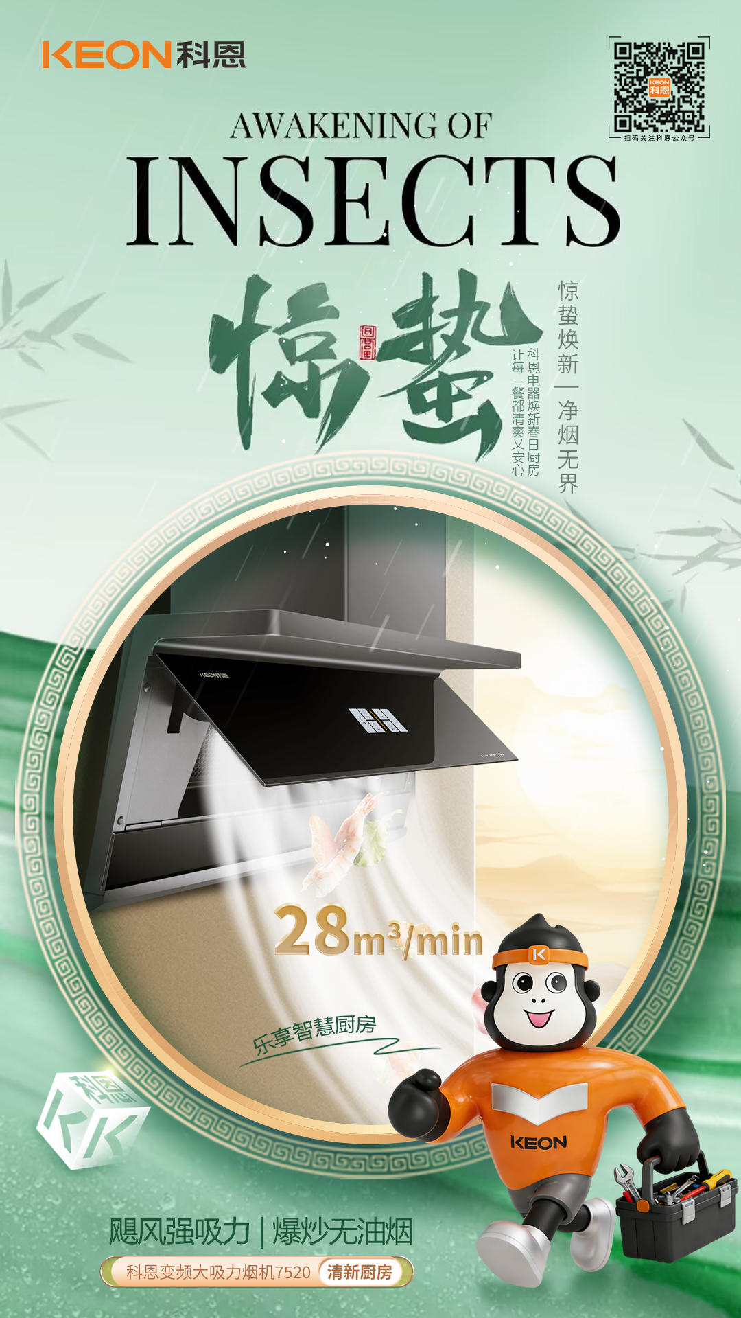 春雷啟驚蟄,煥廚正當(dāng)時(shí),科恩大吸力煙機(jī)7520,以巧裝破局,以強(qiáng)吸凈味,以智能省心,一灶春風(fēng),一室清新,讓廚房告別油煙困擾,讓烹飪回歸自在從容。驚蟄煥新,選科恩7520,凈享健康無煙,悅啟春日美好廚居生活!