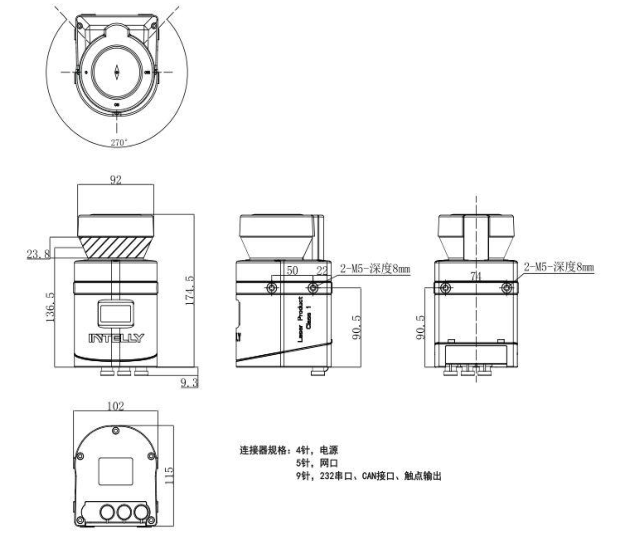 掃描角度范圍 0°- 270° 外殼尺寸 174.5mm * 115mm * 102mm