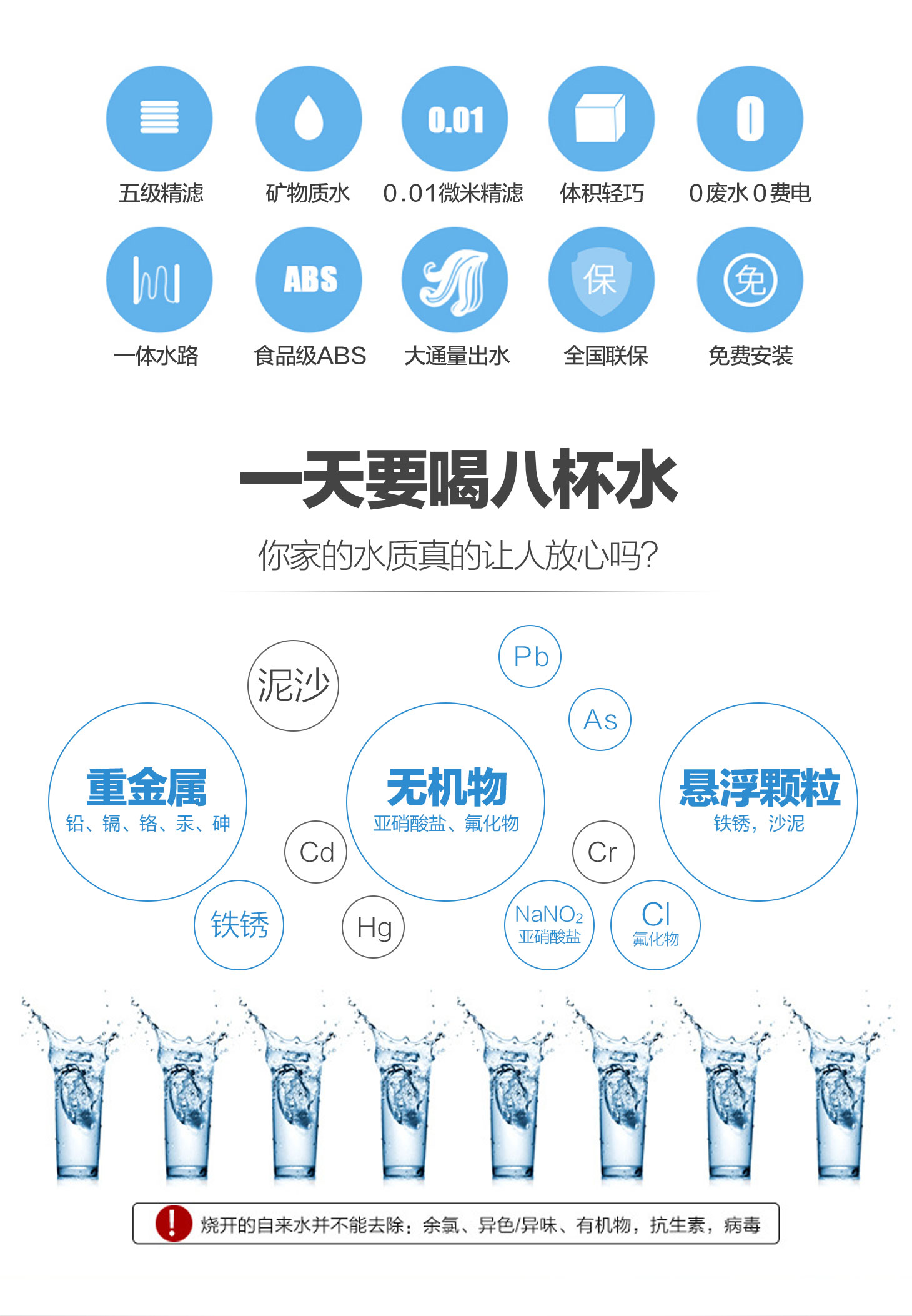 四重五級過濾,0.01微米超濾膜去除細菌和病毒