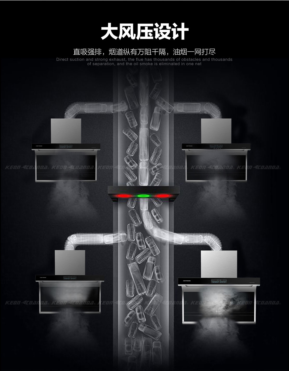 • 頂側兩吸,多方位爆吸油煙,四面八方不跑煙。