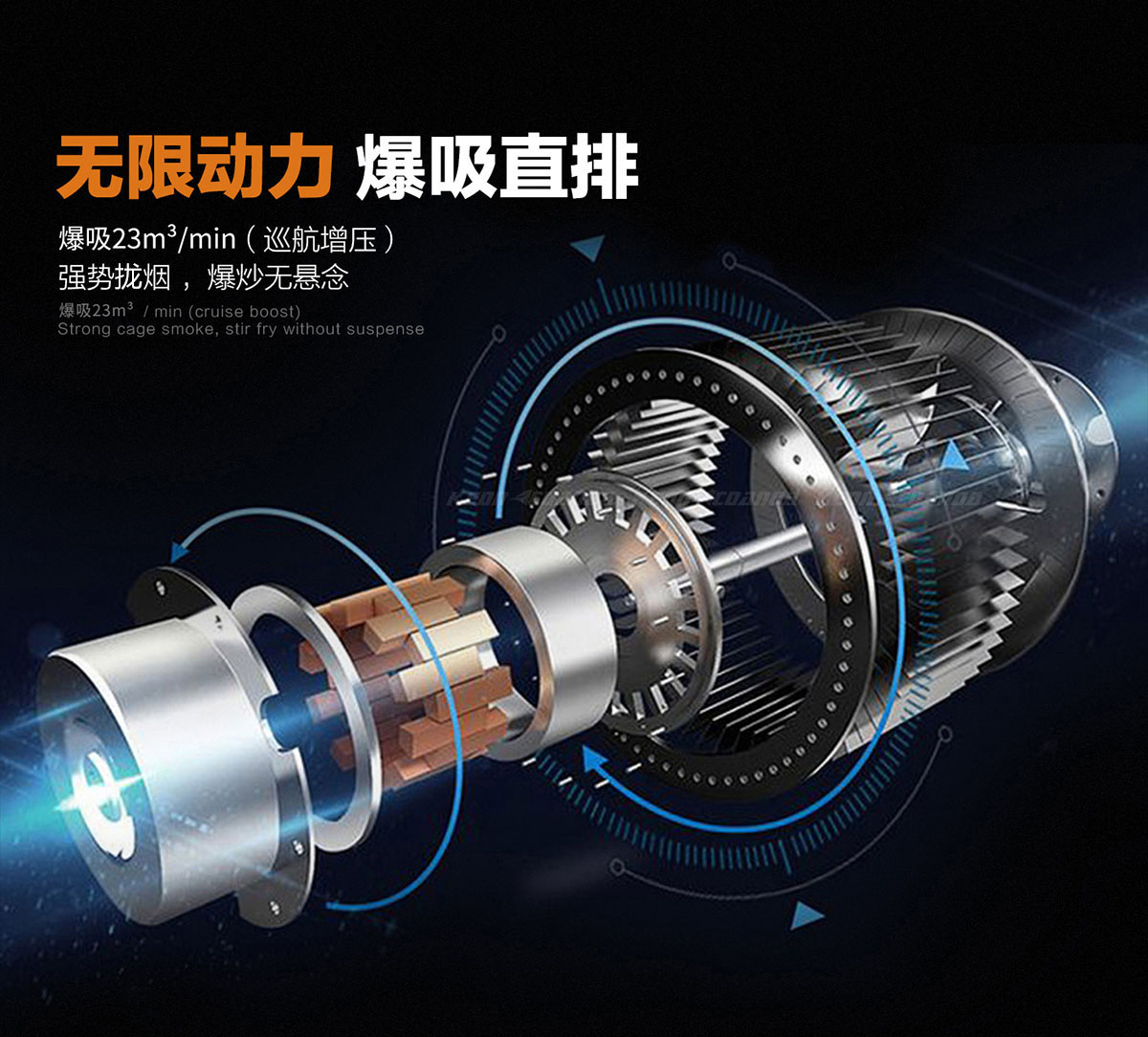 • 一鍵爆炒,8檔吸力,專為中國廚房習慣爆炒而量身定制。
