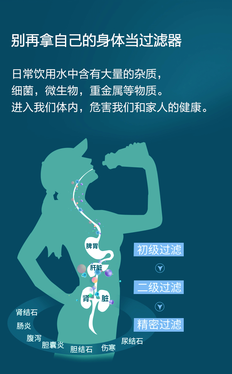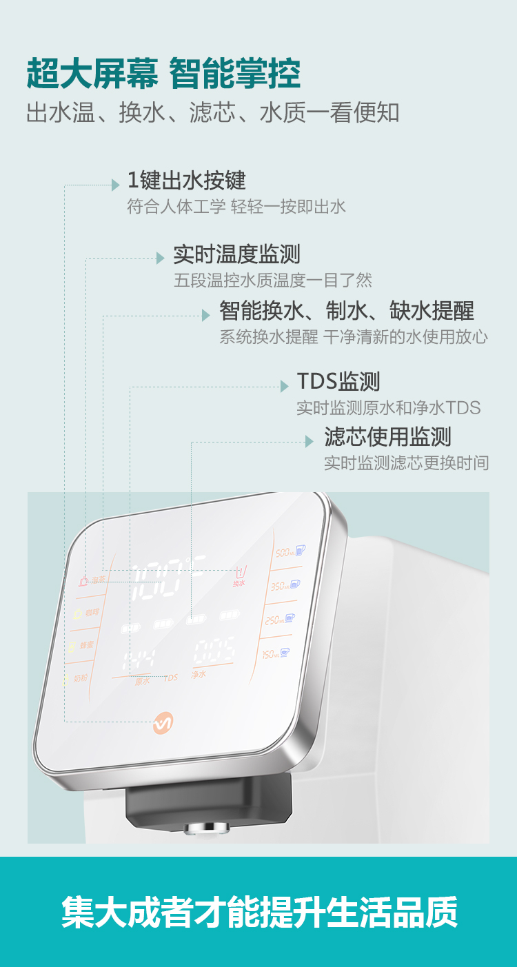 - TDS實時檢測,開機第一時間快速顯示原水值和凈水值,用水更放心。
