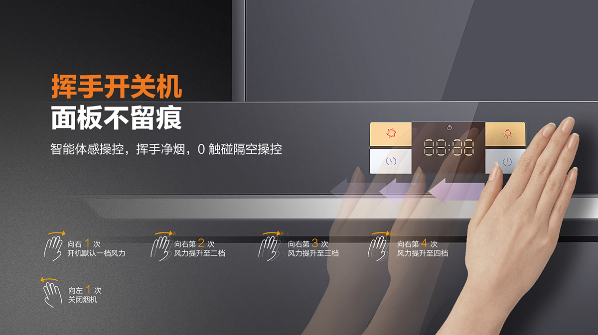 - 智能體感,0觸碰隔空操控,揮手凈煙
