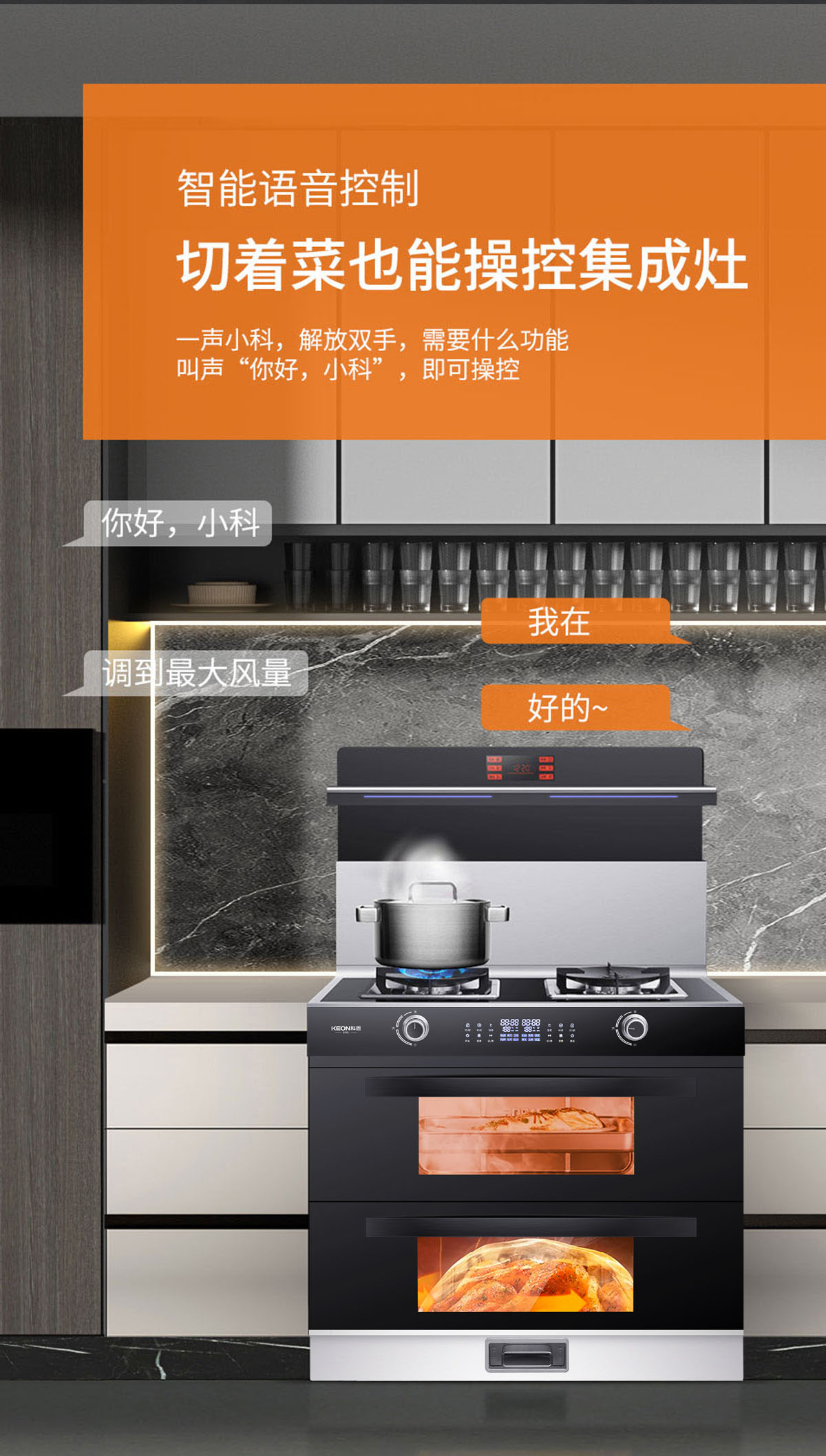 - 智能語音控制,上蒸下烤二合一,獨(dú)立控制省時(shí)又高效