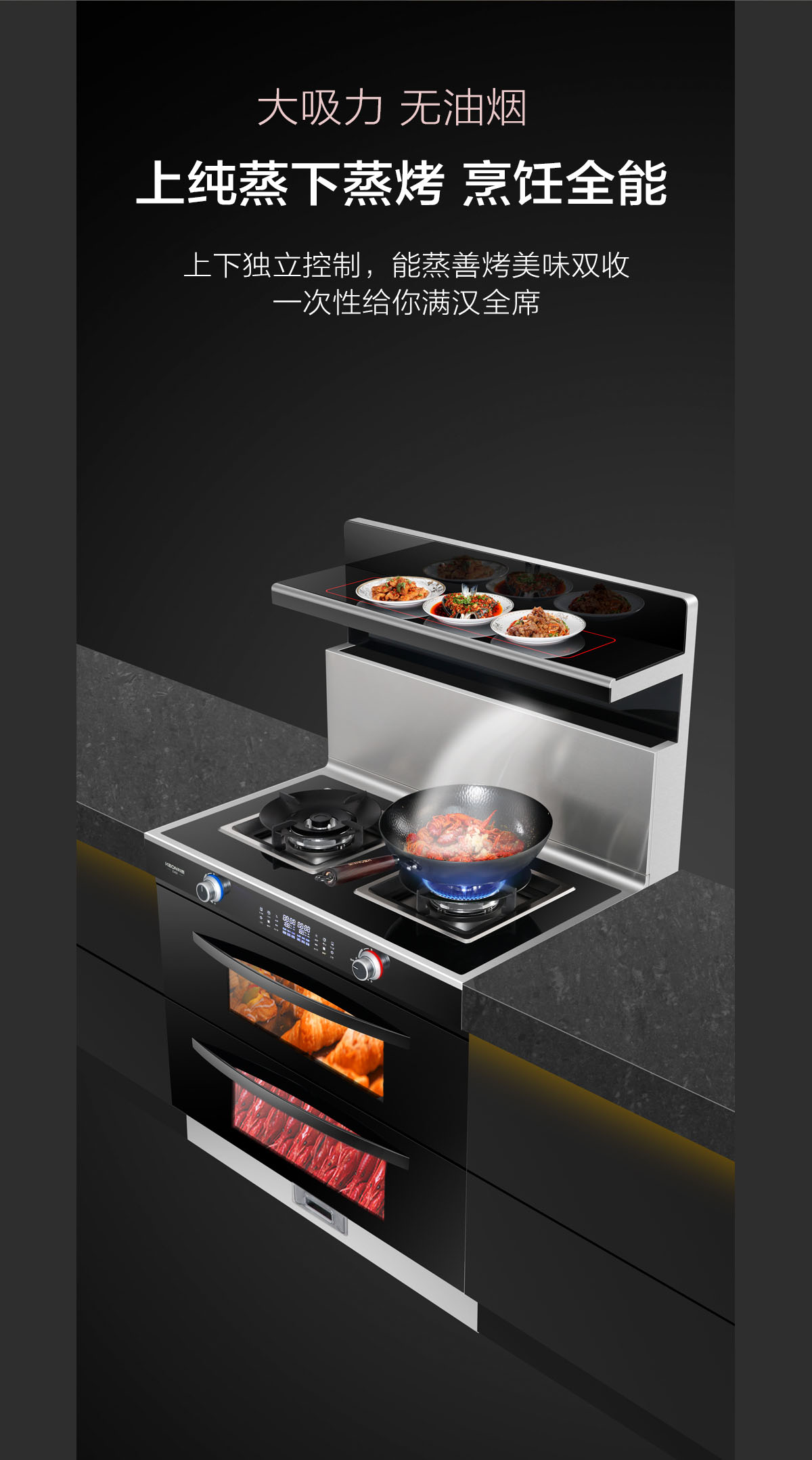 - 上下獨(dú)立控制,蒸善烤美味雙收,一次性給你滿漢全席