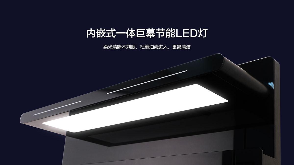 - 內嵌式一體巨幕節能LED燈,杜絕油污進入