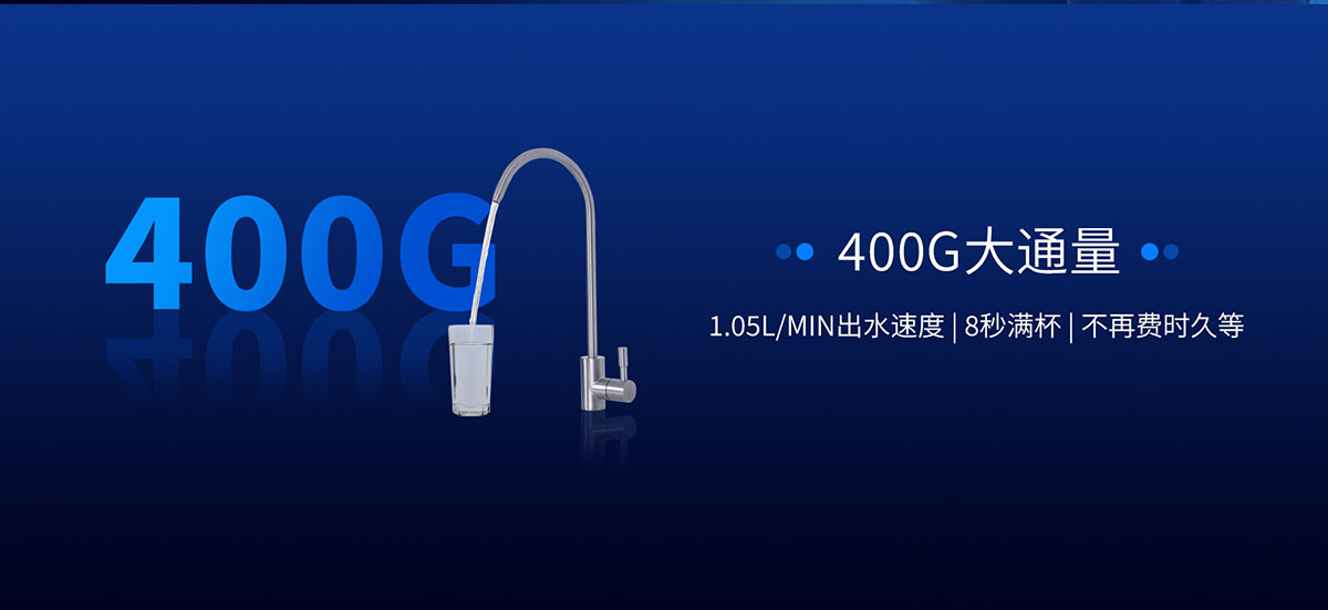 - 400G大通量,1.05L/min出水速度,8秒滿杯