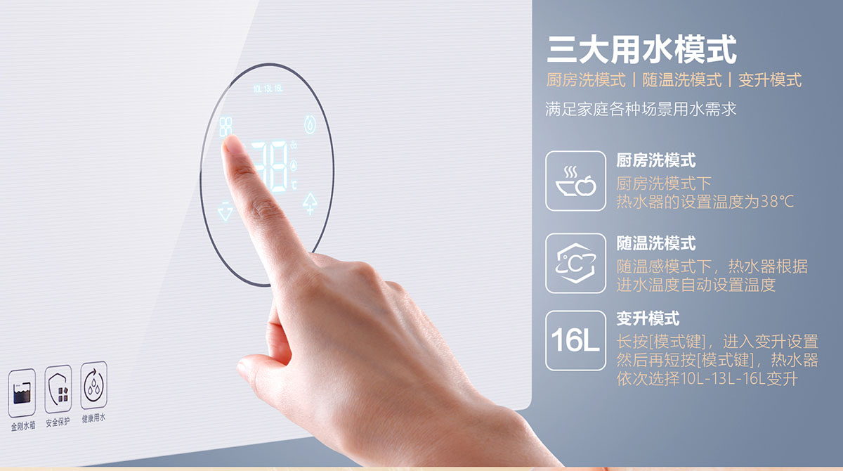 - ⻛機預清掃和后清掃功能,避免點⽕時出現爆燃及降低停⽔溫升