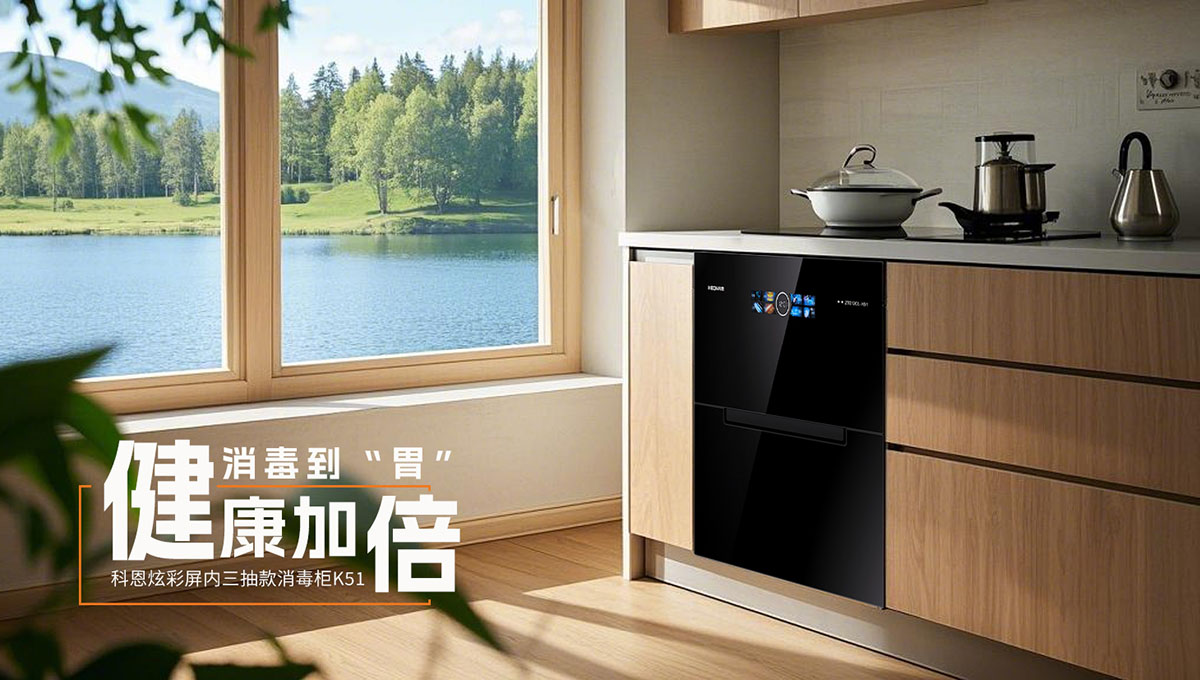 產品型號:ZTD120L-K51(炫彩屏內三抽款)產品名稱:科恩內三抽消毒柜