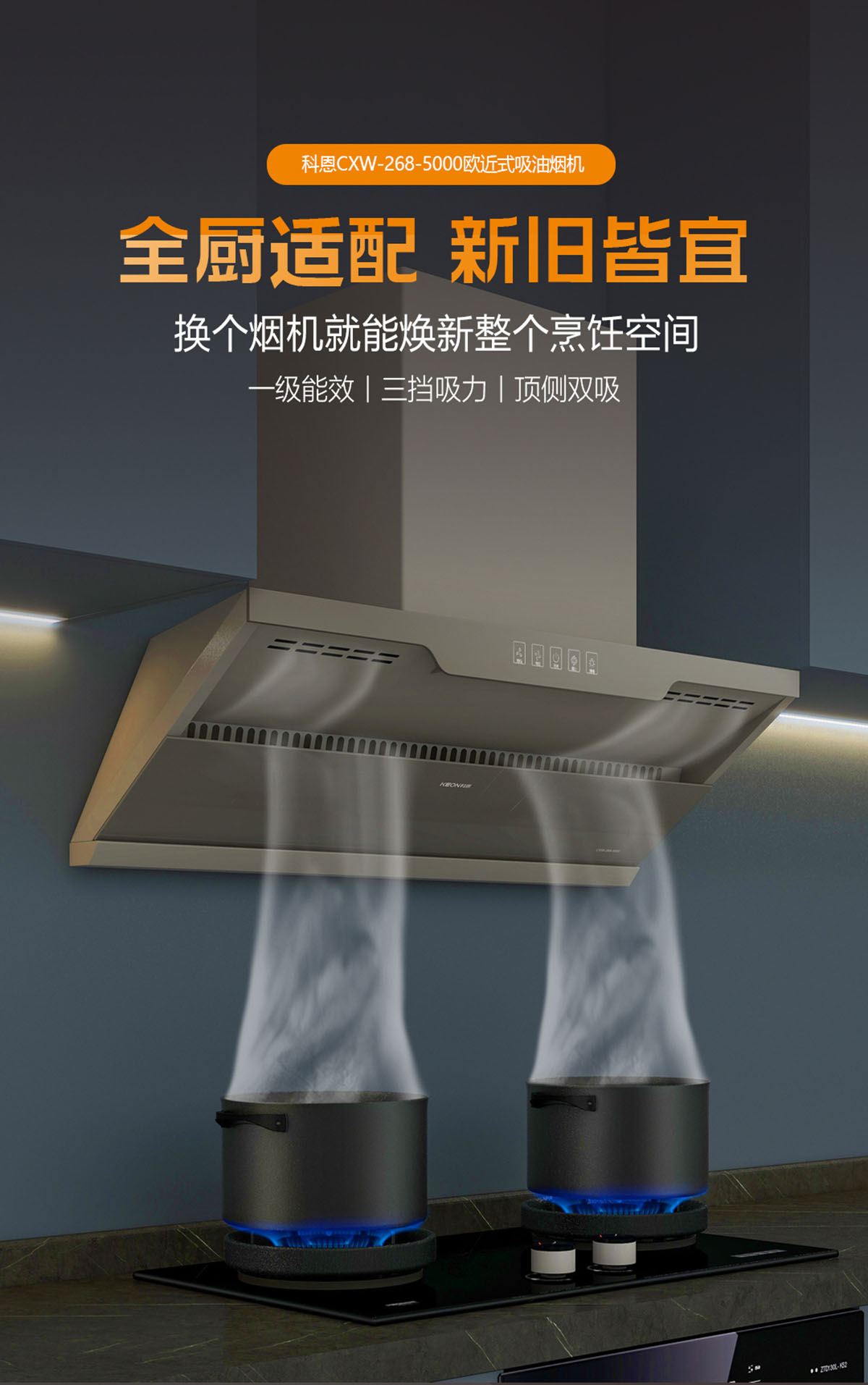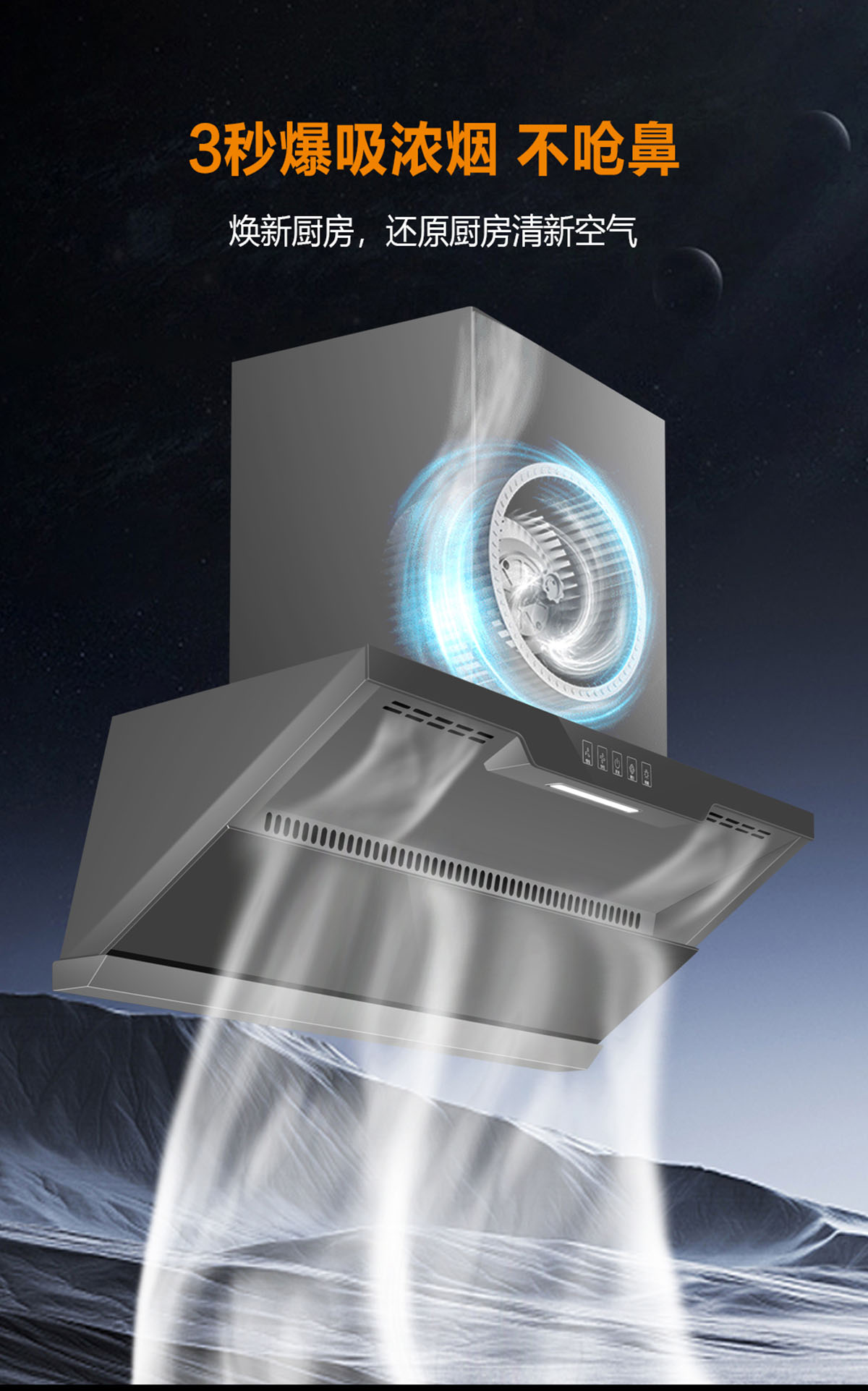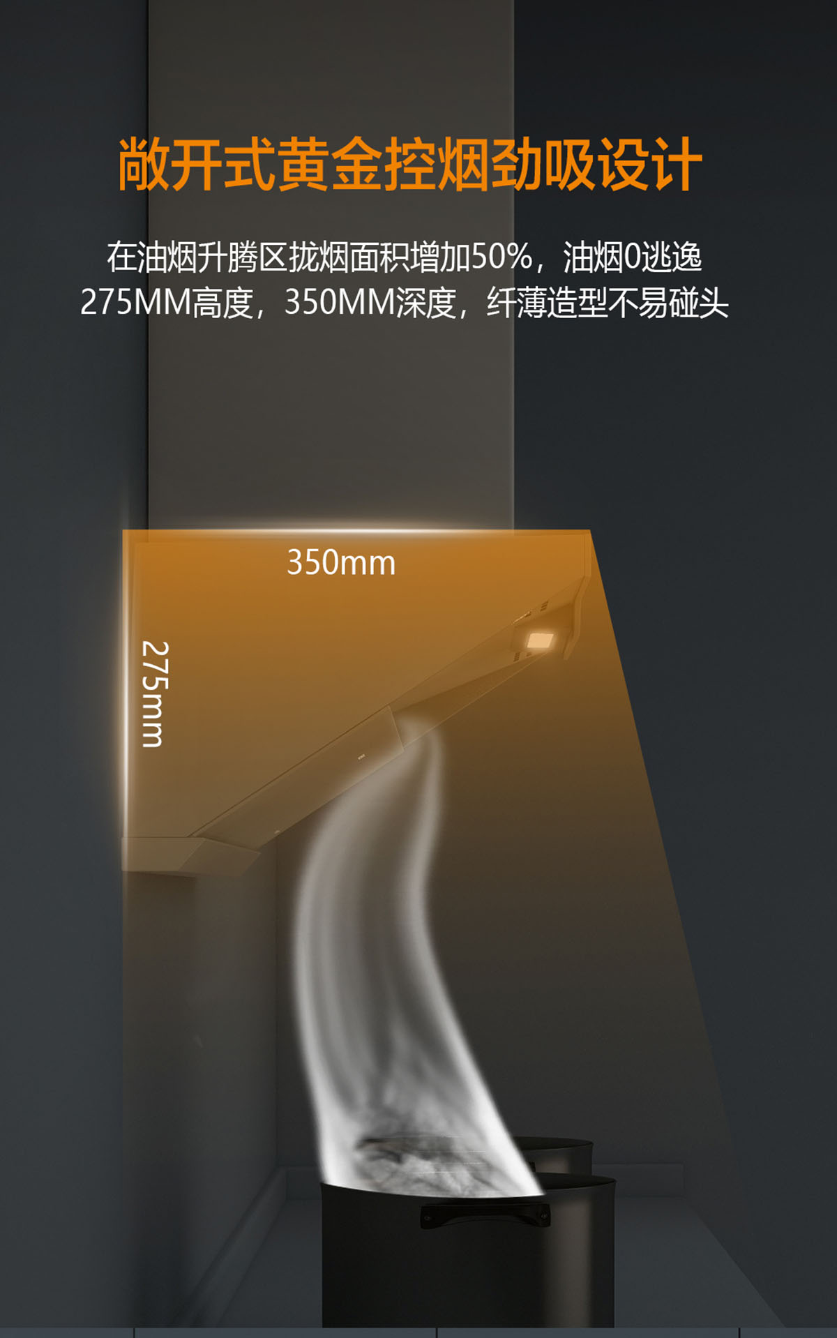 - 黃金控煙勁吸設計,攏煙面積增加50%,油煙0逃逸