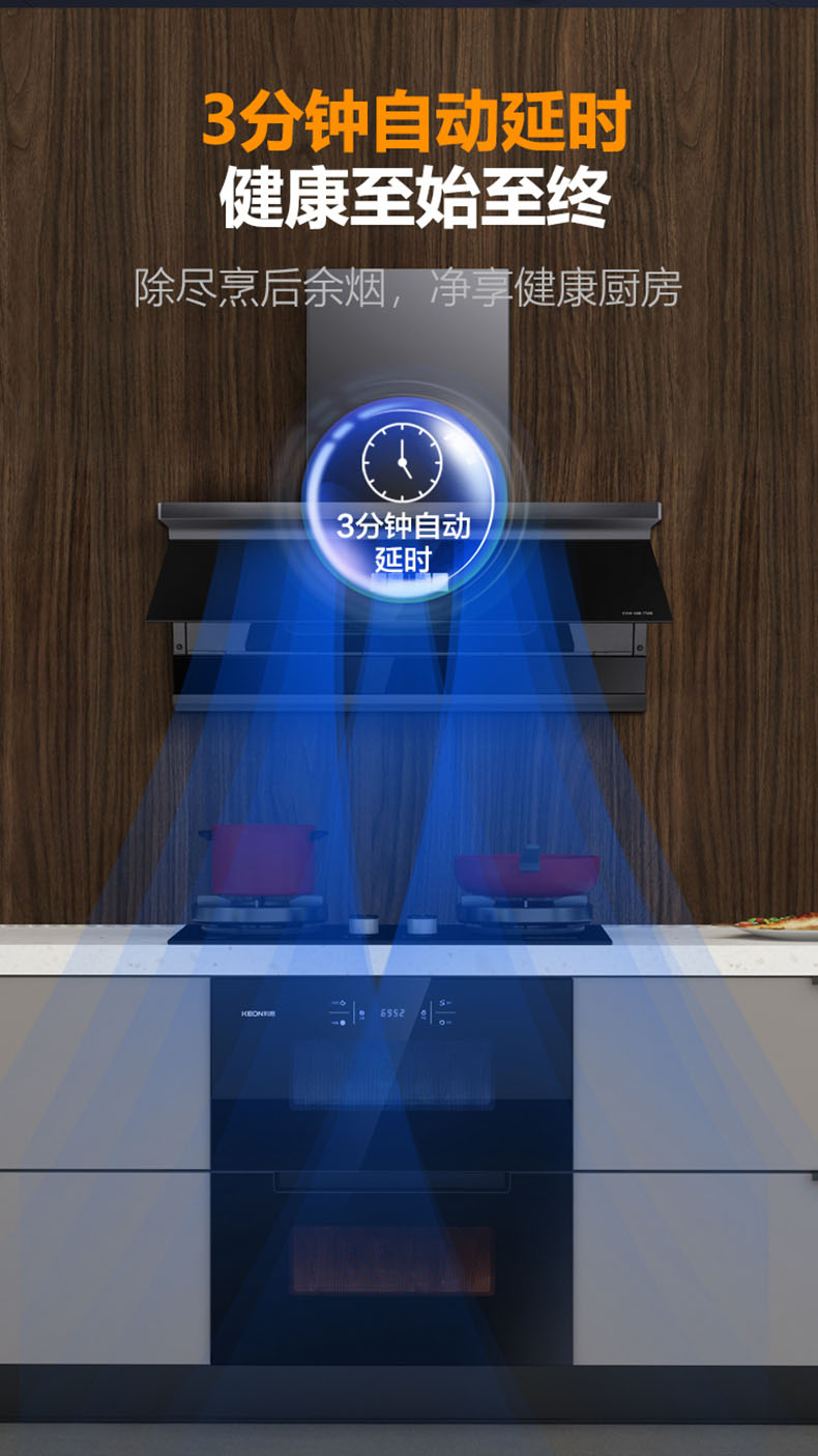 - 健康至始至終,3分鐘自動延時,除盡烹后余煙