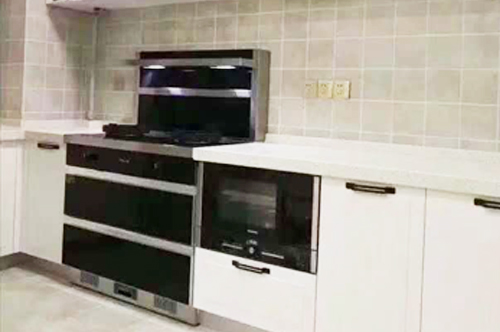 科恩山東經(jīng)銷商提供的D101集成灶和蒸箱廚房實景