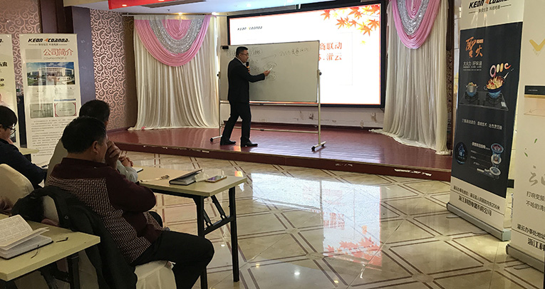 在會議現(xiàn)場,科恩電器育商學院王校長分析了整個廚電行業(yè)發(fā)展態(tài)勢,闡述了江蘇市場的重要性,全面剖析了灌云的市場情況,鼓勵灌云廣大經(jīng)銷商緊跟公司步伐,聚勢合力共同在促銷,宣傳工作上綜合發(fā)力,并指明了未來工作重心和發(fā)展方向。并以公司多場終端促銷活動作為引子旁征博引,用豐富的語言深刻形象介紹了產(chǎn)品包裝、品牌傳播、門店建設、渠道建設與整合營銷等多項實戰(zhàn)技能,以幽默風趣的語言,深入淺出的為在場各位經(jīng)銷商傳授了最深刻的經(jīng)驗。